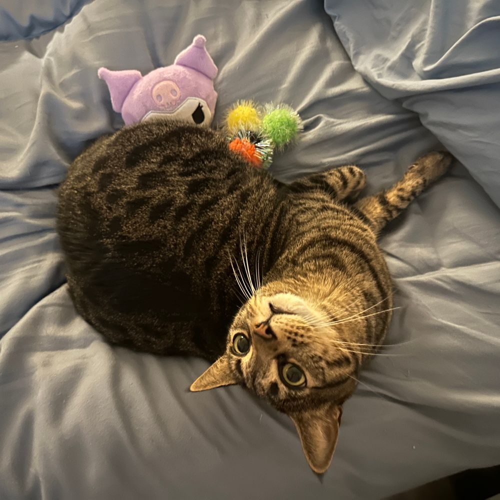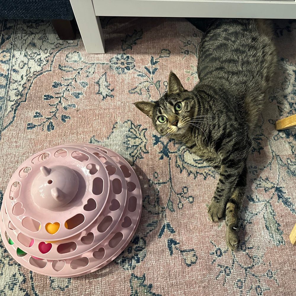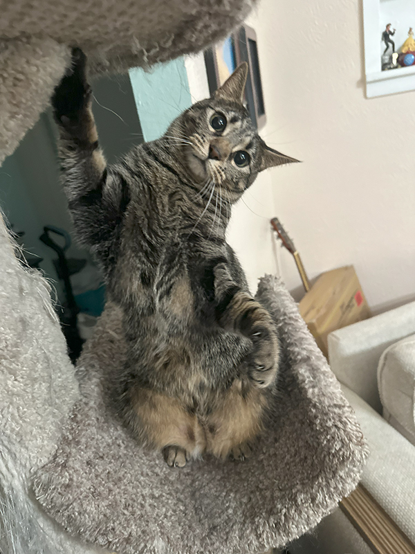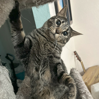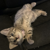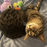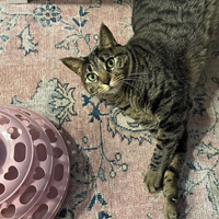 She has a huge personality in a tiny body and is always making me laugh. Claire is reactive and playful; her favourite thing to do is to "hunt" her toys and leave her kills by our bed or in the bathroom for us to find.
